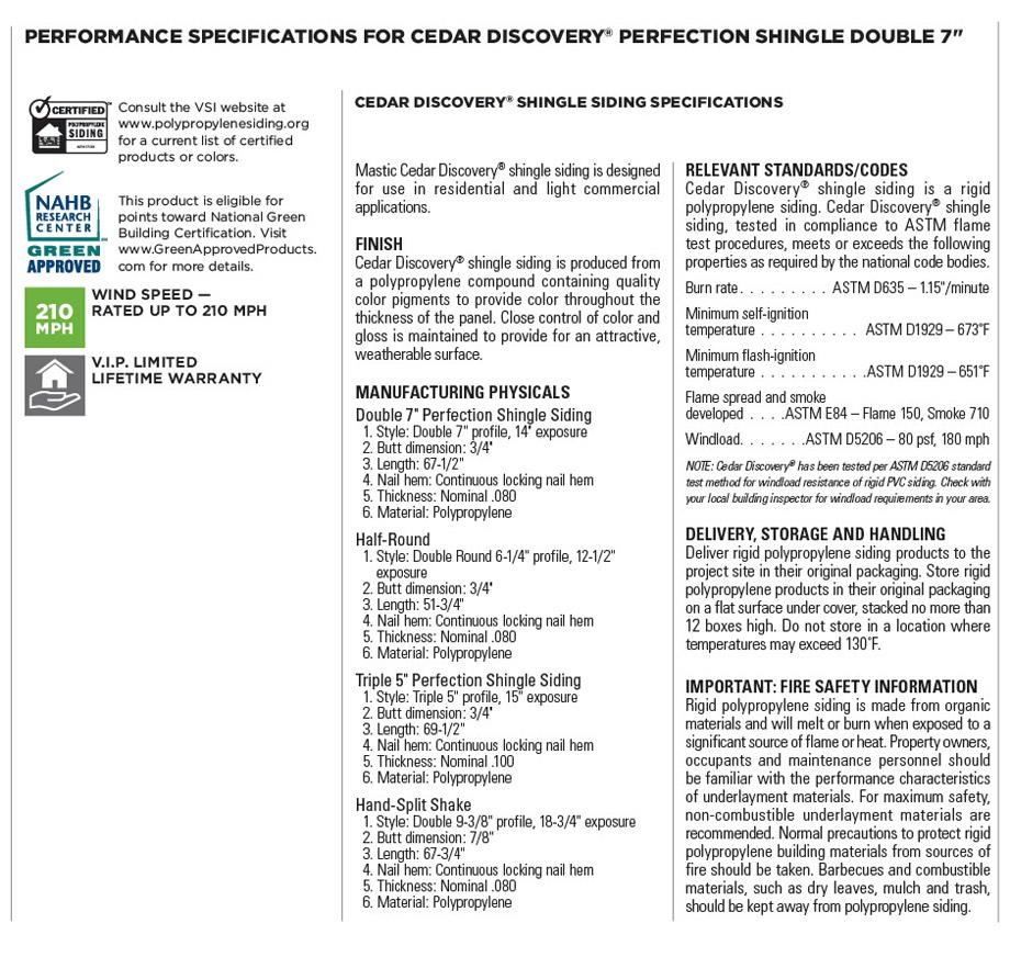 Cedar Discovery Perfection 7" shingles have the medium texture and random gaps of real No. 1 grade red cedar shakes, but without the costly maintenance and repair. Choose from the subtle shading and color variations of naturally-weathered cedar, or the fresh look of recently-painted shingles. *Due to screen resolution limitations, product colors may not be exactly as shown.